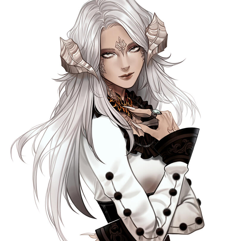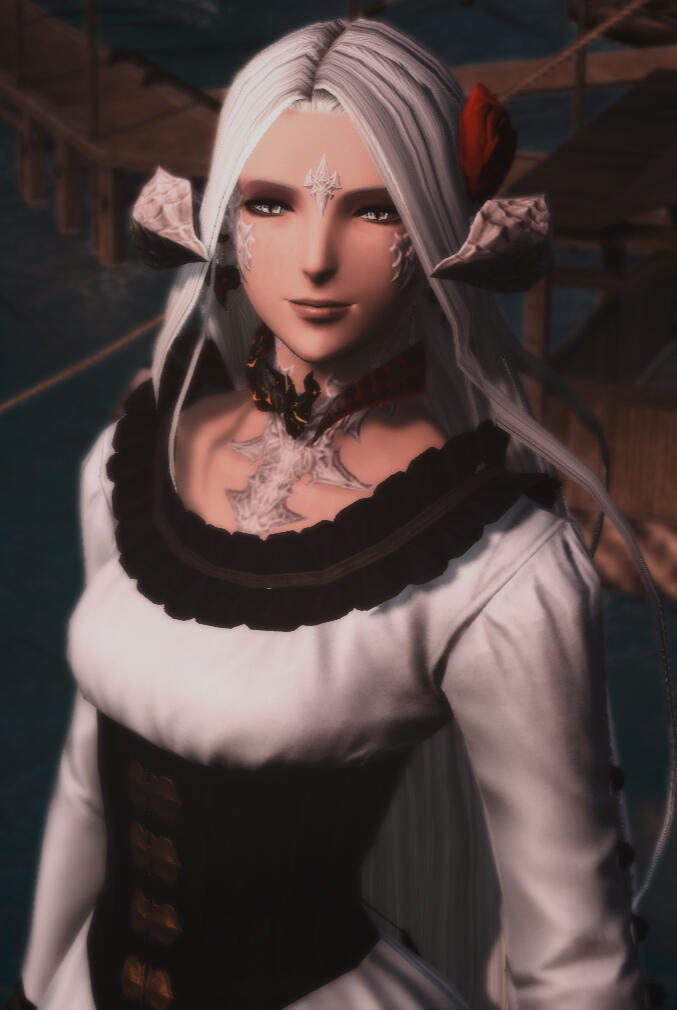 A secret Verdandir hides, and why she is both deeply curious and naive, is that she is a child of Hraesvelgr’s flight. A Dravanina born of Vidofnir during the midst of the Dragonsong War. She was avidly fascinated by the Sharlayan Colony when it was established and crept down to observe the inhabitants, which is where she learned what she did of Landlord ways before the Calamity. At the end of the Dragonsong War she decided to take Landlord form and leave her people to try to learn how the world, and its people, have changed in the thousand years that Dravanian and Man have been split. She ‘acquired’ a teacher (of sorts) during her time at the Sharlayan Colony who provided the necklaces that help to shield her aether and allows her to better hide her draconic nature.